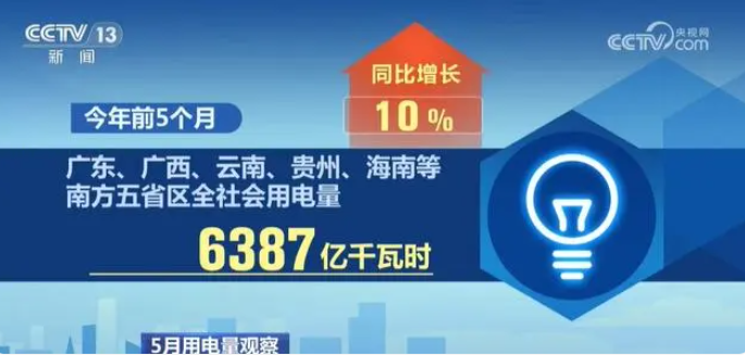央視網(wǎng)消息:用電量數(shù)據(jù)一直被看作經(jīng)濟(jì)運(yùn)行的“晴雨表”,從國家發(fā)展改革委等部門近日公布的數(shù)據(jù)中可以看到,5月份,我國東、中、西部及東北地區(qū)全社會(huì)用電量均實(shí)現(xiàn)正增長,電力消費(fèi)延續(xù)平穩(wěn)較快增長勢頭。
